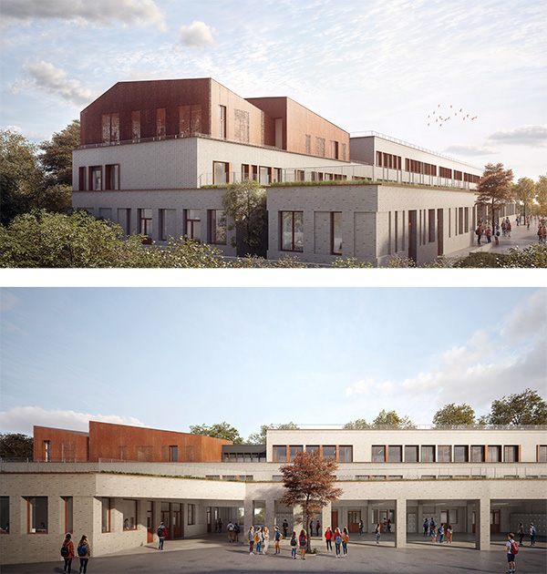 – Des interventions de désamiantage et de démolitions partielles dans les bâtiments existants.– Des extensions neuves sur 3 faces du bâtiment externat ainsi que sur 2 faces du bâtiment demi-pension.