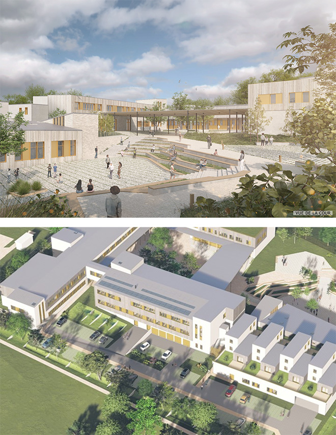 •La construction d’un collège provisoire afin d’accueillir une partie des élèves pendant la phase de travaux. Il doit de plus s’articuler avec une partie du collège existant.